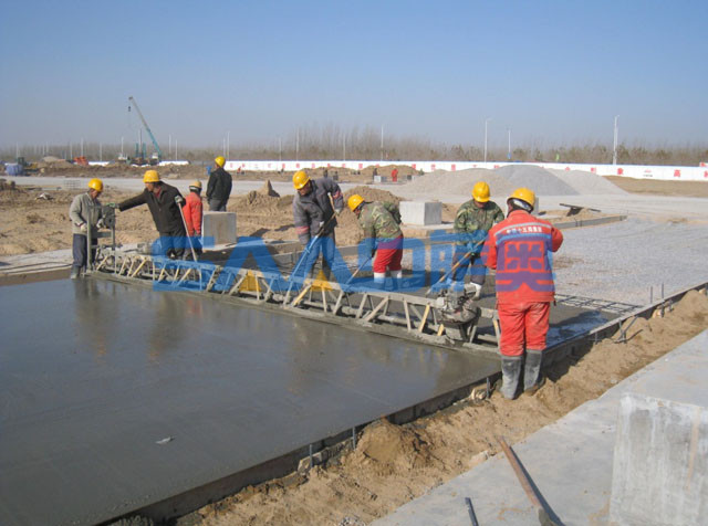 框架整平機(jī)用于混凝土地面的提漿、壓實(shí)、整平,是修建公路、車間、廣場的新型設(shè)備。 下圖是薩奧客戶反饋回來的框架整平機(jī)正在攤鋪水泥路面。