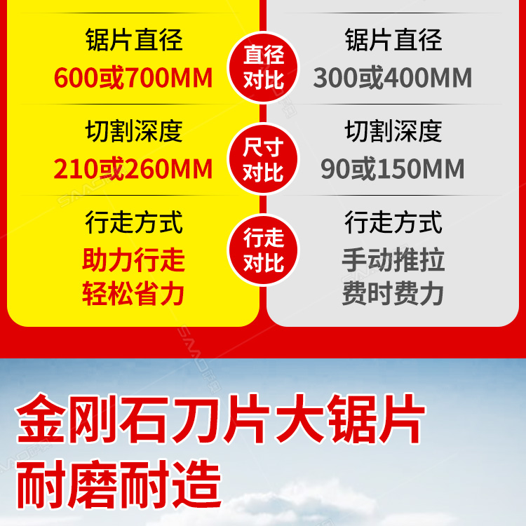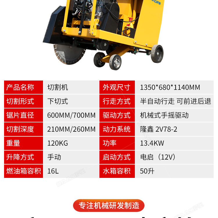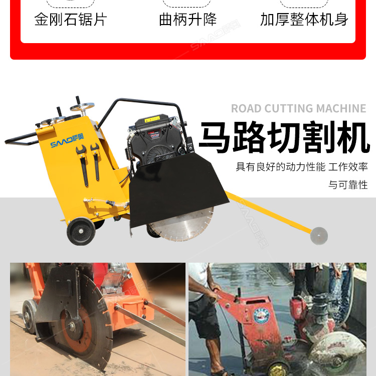 大直徑馬路切割機用于瀝青路面、水泥路面、混凝土制品、石材等的切割作業(yè)。