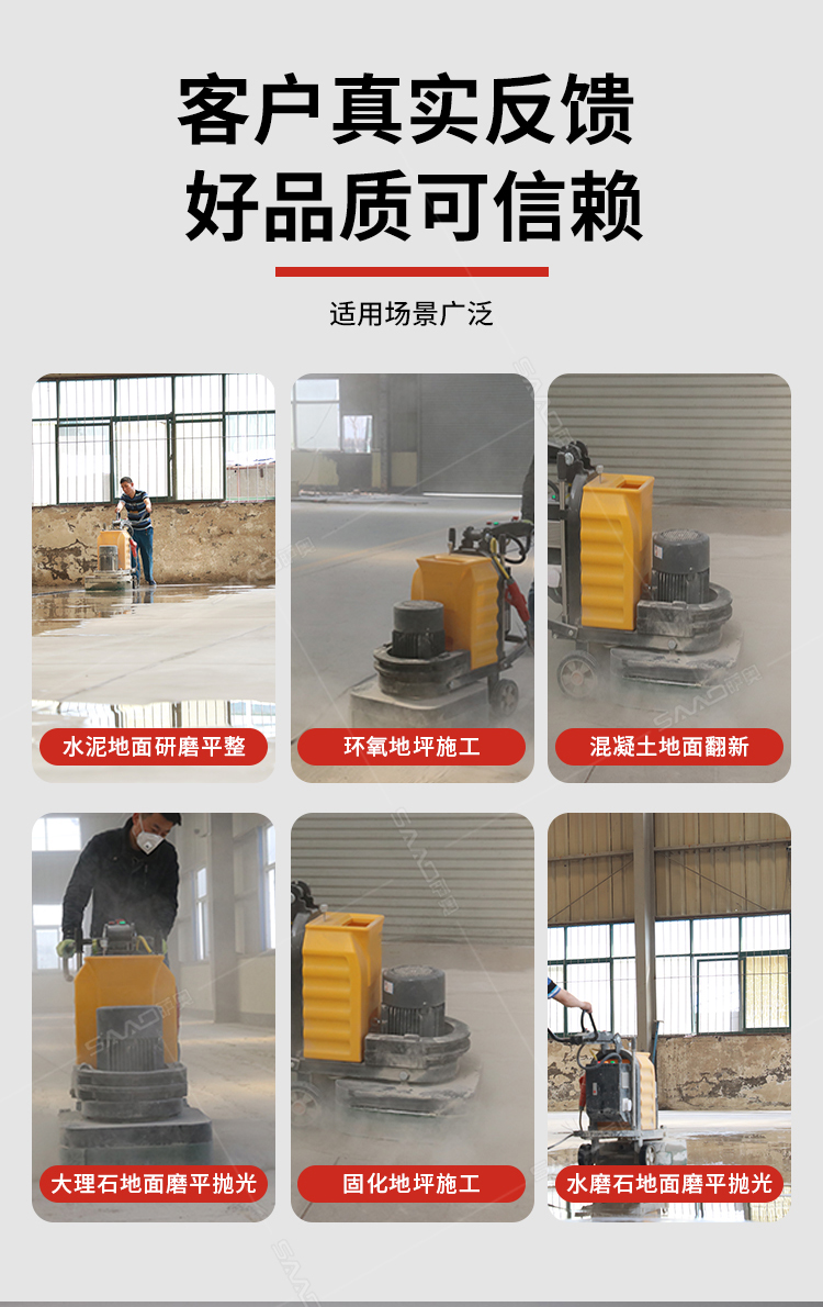 其廣泛用于混凝土地面、石材地面的研磨、拋光,終達(dá)到舊地面翻新、新地面無塵的效果。