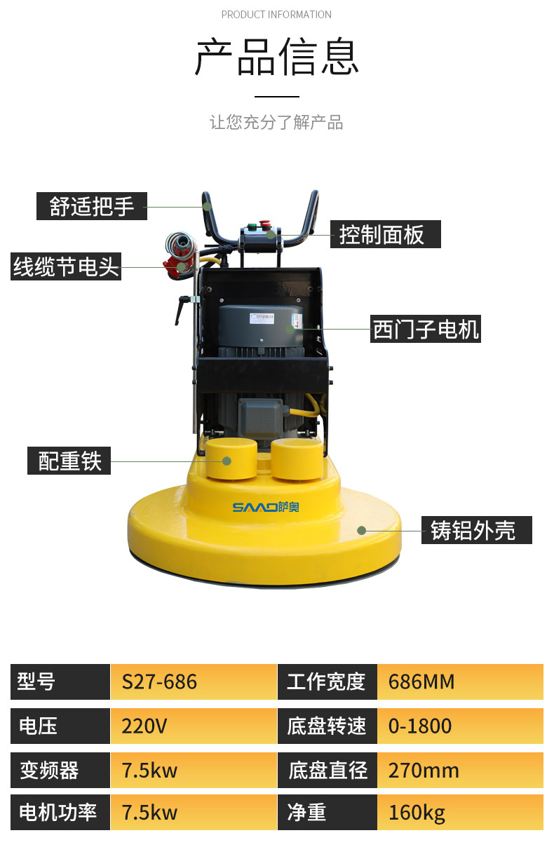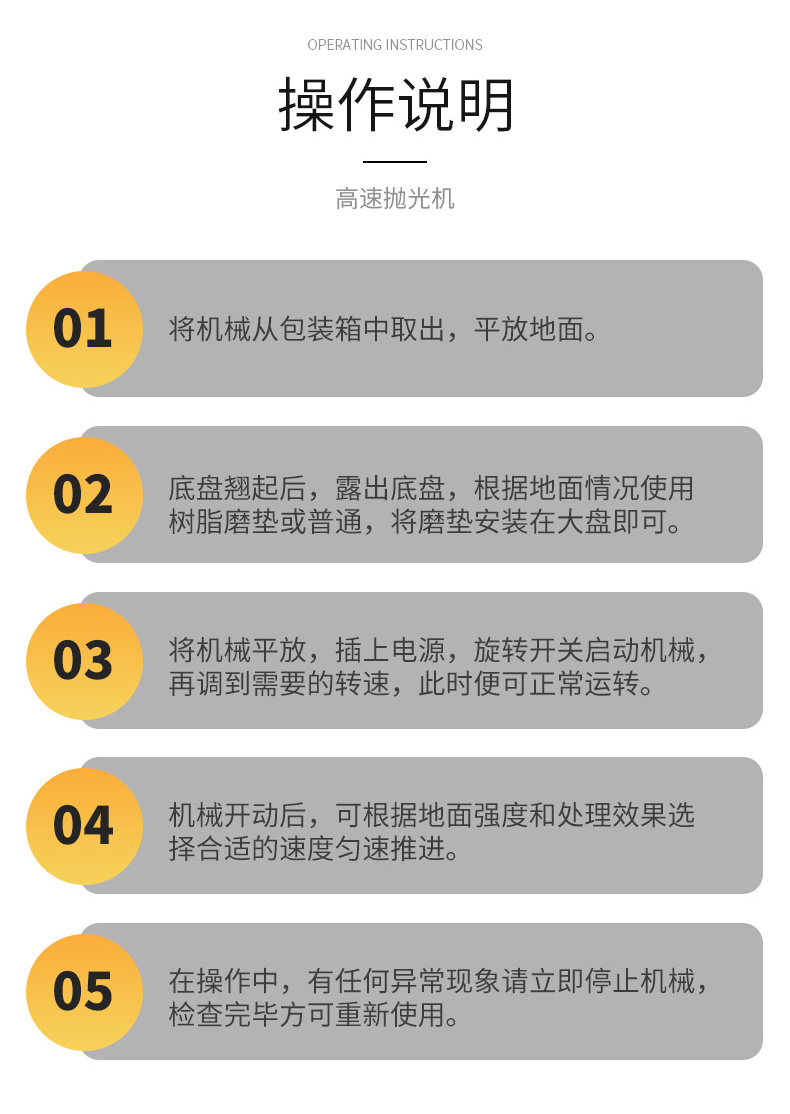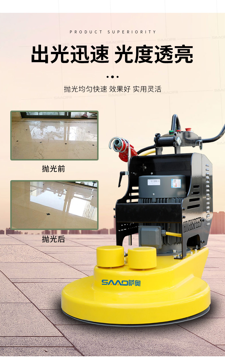 產(chǎn)品介紹: 高速拋光機是最具有競爭力的地坪機型系列。長期占據(jù)可觀的市場份額。其廣泛用于固化地面,石材地面的拋光,最終使得地面產(chǎn)生高潔,持久的光澤。 產(chǎn)品展示圖: 產(chǎn)品