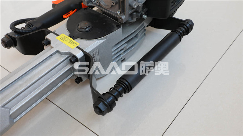 4.舒適雙把手,操作握把為帶橡塑海綿手柄,可大大降低機(jī)器的反沖力,并安裝了雙向減震彈簧,提高使用者舒適性防滑減震握感舒適。