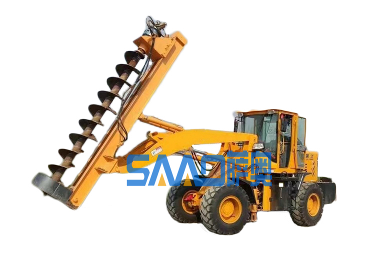 產(chǎn)品適用于電線桿挖坑、路燈桿、光伏支架、民房打樁工程中的鉆孔工作,一車(chē)多用,采用最常用的裝載機(jī)為載體,采用前置式鉆孔,不破壞裝載機(jī)的運(yùn)輸功能。