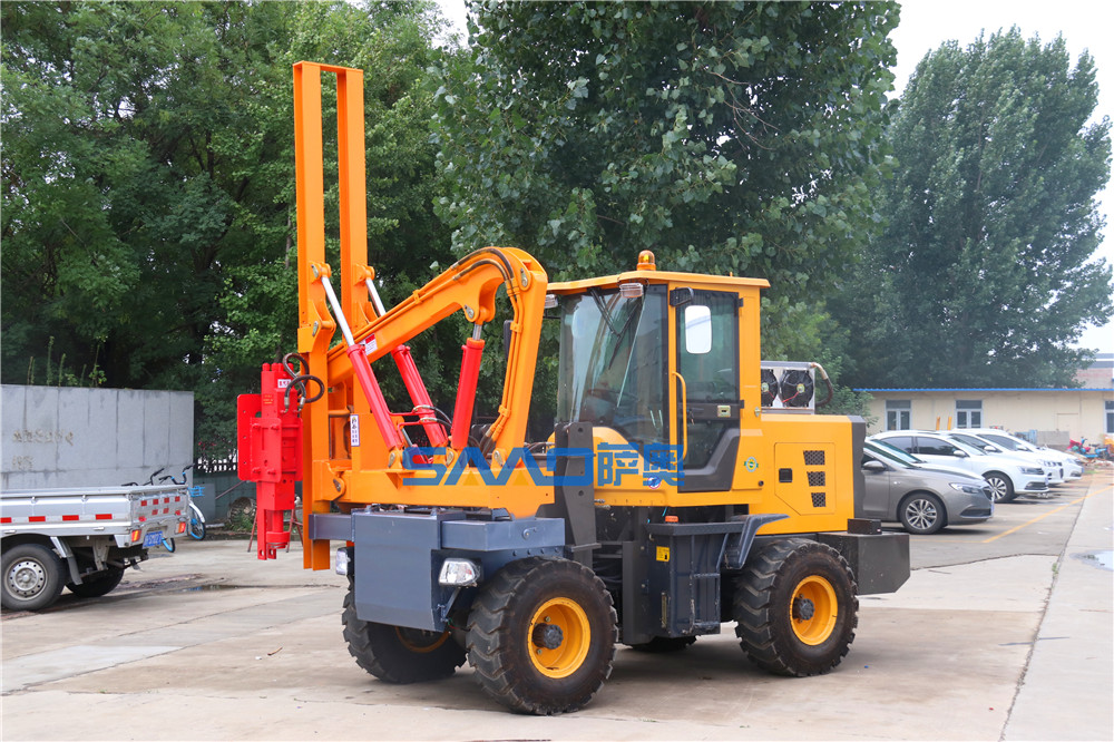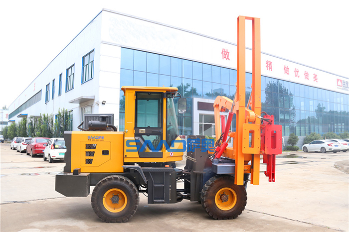 裝載機(jī)式護(hù)欄打樁機(jī)是薩奧機(jī)械根據(jù)市場需求和自身技術(shù)成熟的情況下面向客戶需求而研發(fā)的一款產(chǎn)品,是集裝載、打樁、鉆孔等功能為一體的新型產(chǎn)品。采用全新設(shè)計(jì)理念、精心研制整體功能,結(jié)構(gòu)模塊化兼顧的設(shè)計(jì)思想,全封閉各木式安裝結(jié)構(gòu),更利于產(chǎn)品快速安裝和轉(zhuǎn)場,可廣泛運(yùn)用于公路、高速等路面護(hù)欄的樁孔鉆進(jìn)工作。