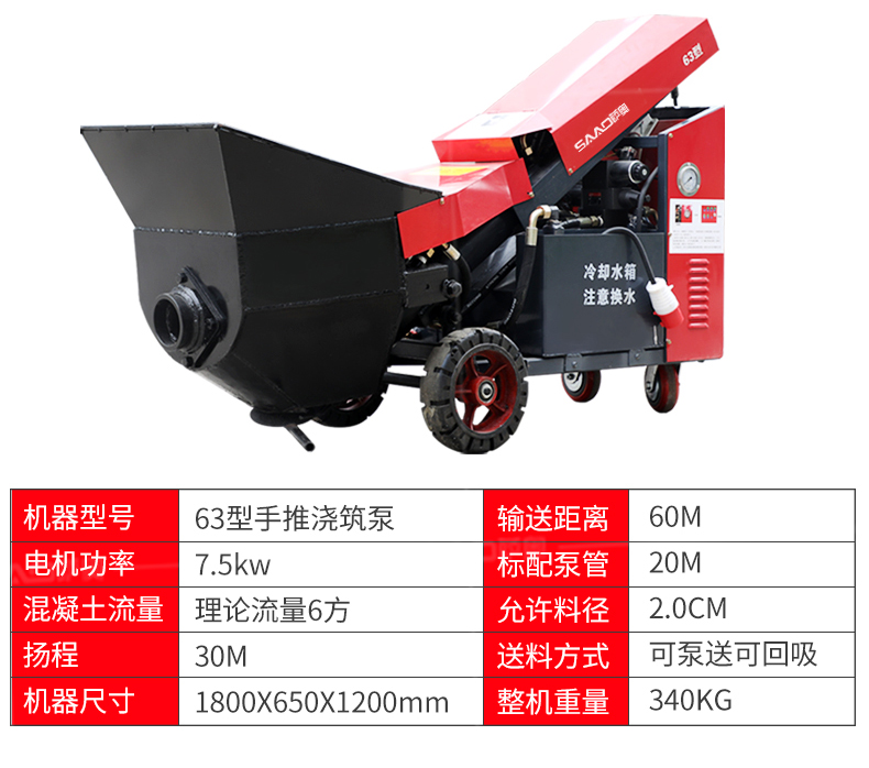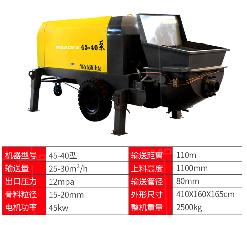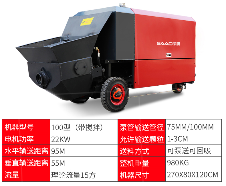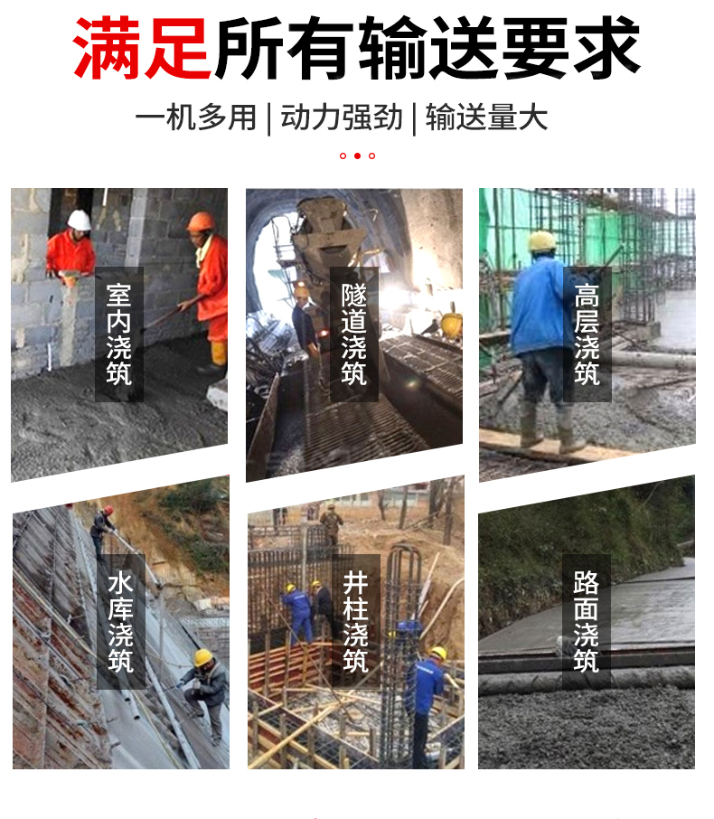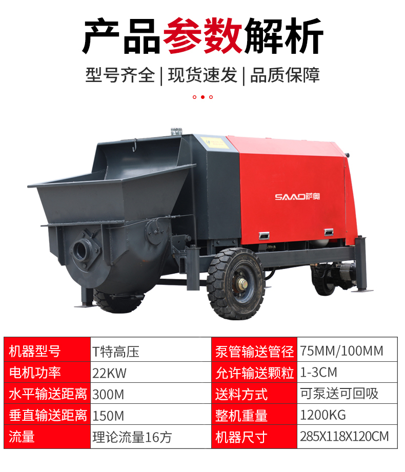 | 9 | 泵管輸送管徑 | 75mm/100mm | 野外施工、農(nóng)村自建房管徑配100mm |