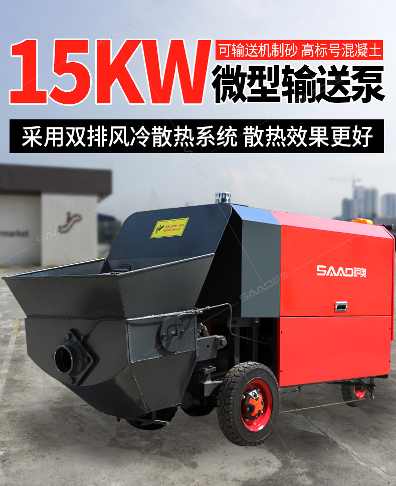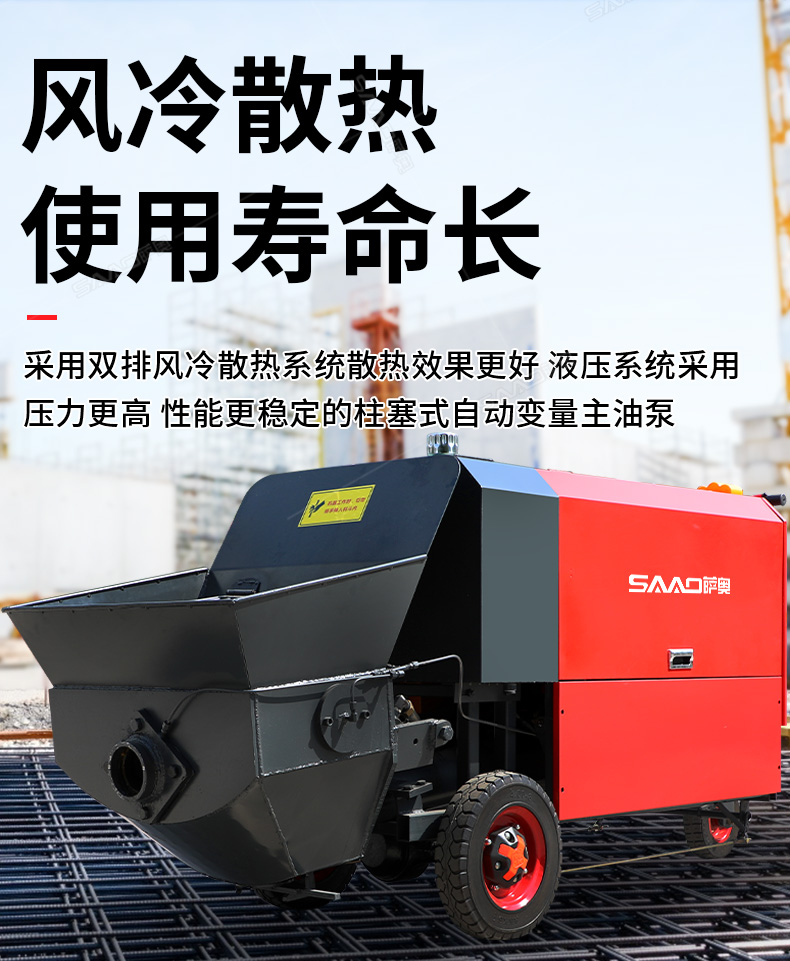 15kw風(fēng)冷散熱澆筑泵采用雙排風(fēng)冷散熱系統(tǒng),散熱效果更好。