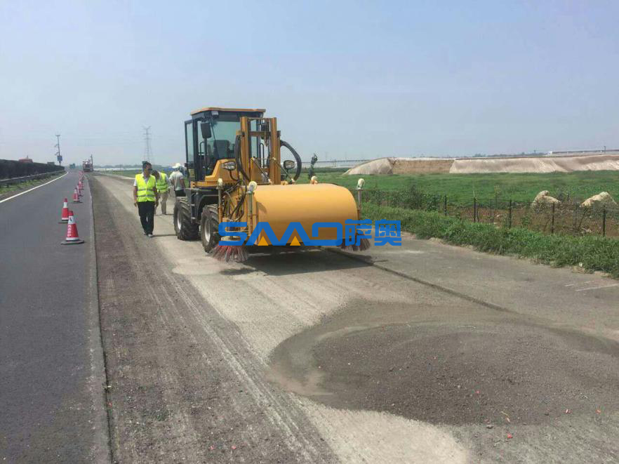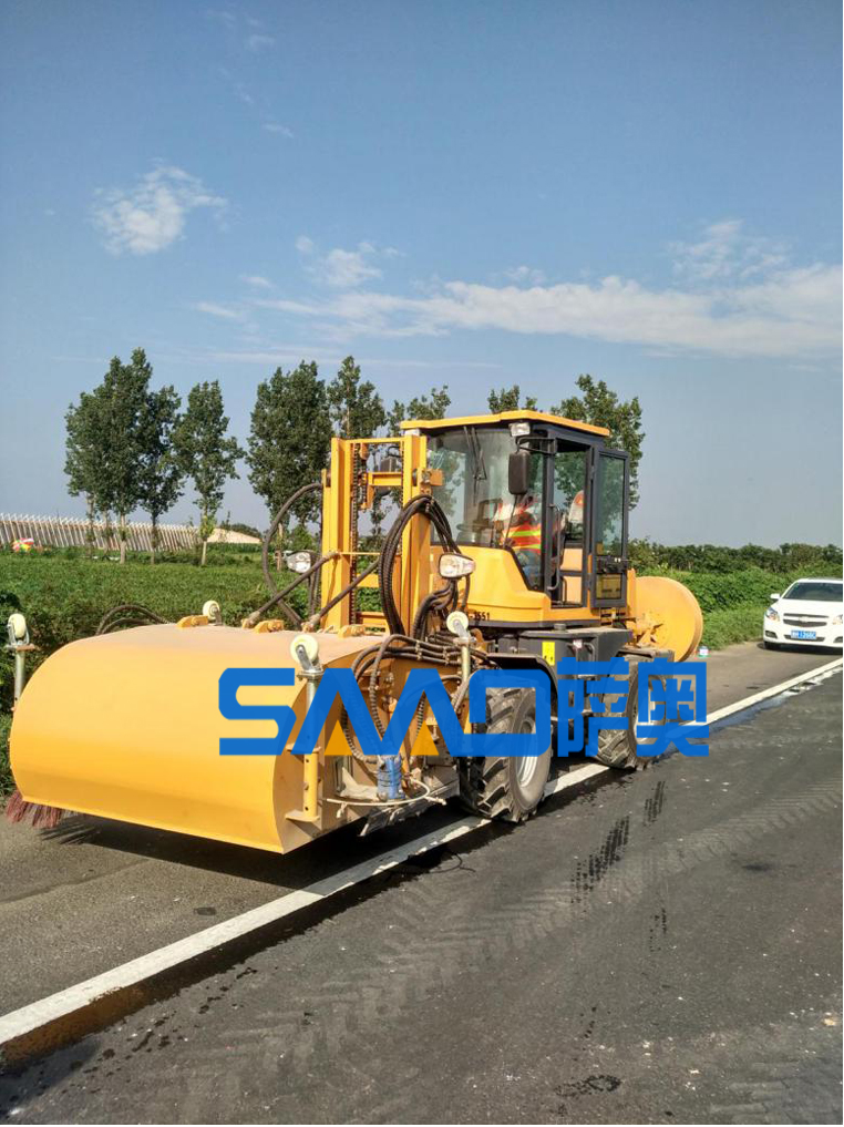 根據(jù)路面作業(yè)要求,在攤鋪機(jī)鋪油作業(yè)前,要求路基表面保持清潔,不能有沙石等雜物。一般情況下每50公里10人需要5個(gè)工作日。而薩奧道路施工強(qiáng)力清掃機(jī)只需要1個(gè)工作日就可以清掃干凈,大大提高了安全性和效率。薩奧道路施工強(qiáng)力清掃機(jī)不僅限于整機(jī)銷售,也針對用戶現(xiàn)有車輛進(jìn)行清掃器的改裝,協(xié)助用戶單位建立全新的機(jī)械化清掃作業(yè)隊(duì)伍,提升作業(yè)效率!擴(kuò)大經(jīng)濟(jì)效益!