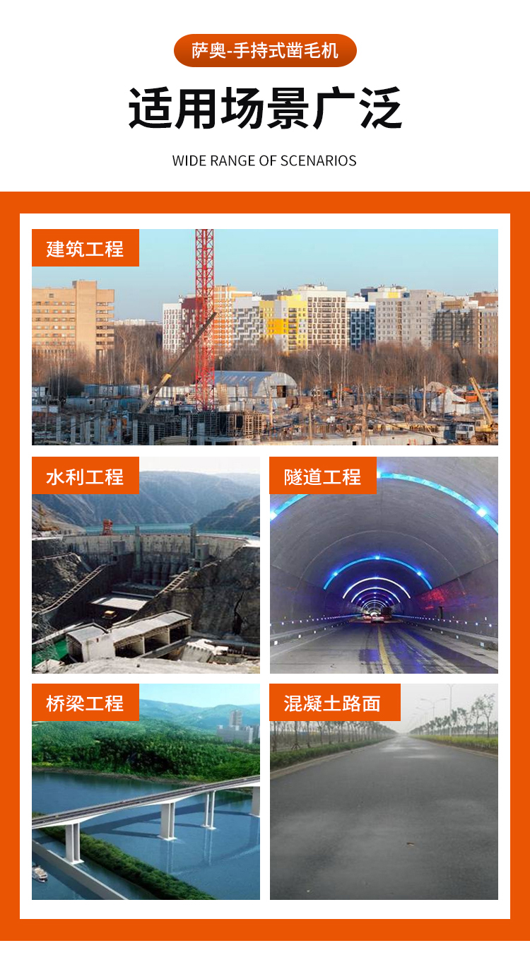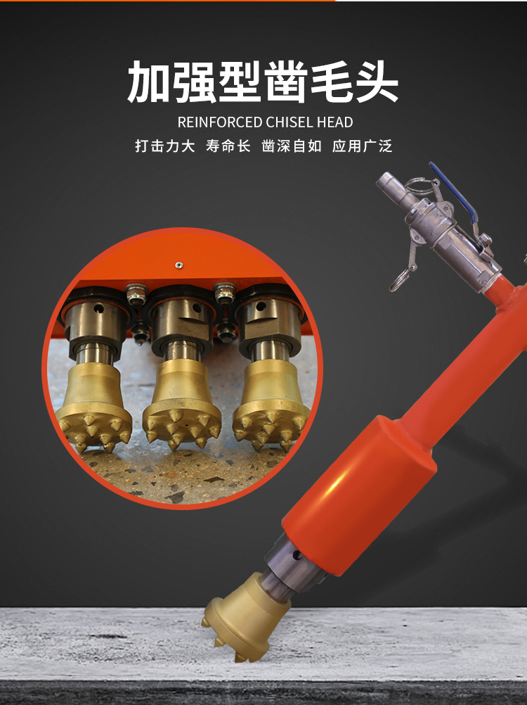 主要適用于水庫、大壩滲漏,險橋危橋、電廠、隧洞、高速公路、鐵路橋面以及箱梁混凝土等眾多領(lǐng)域 。主要是對混凝土表面進行剔鑿,建筑物墻體、地面以及市政工程混凝土面層剔除、修補、翻新、加固等。