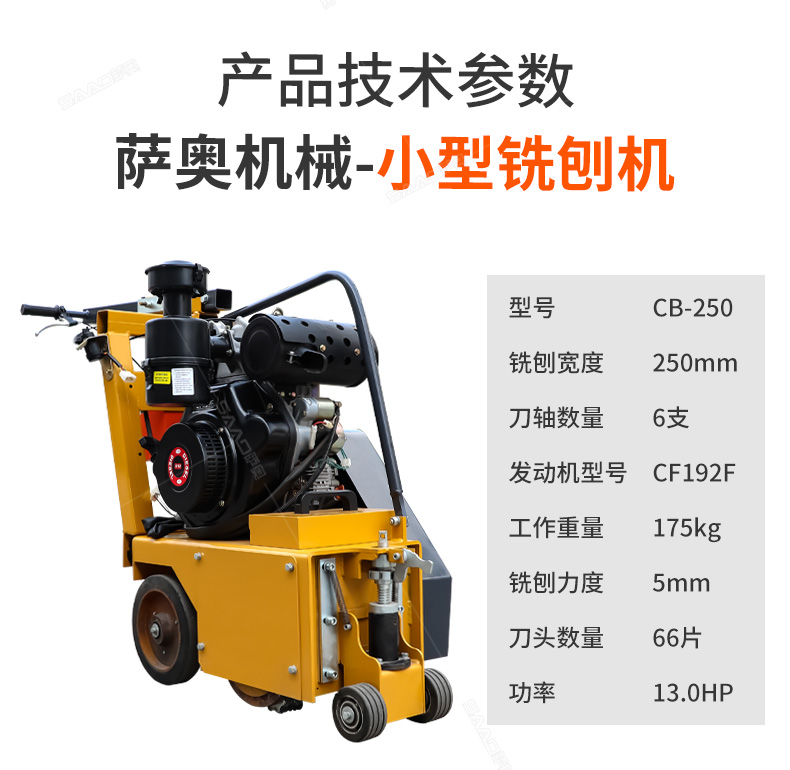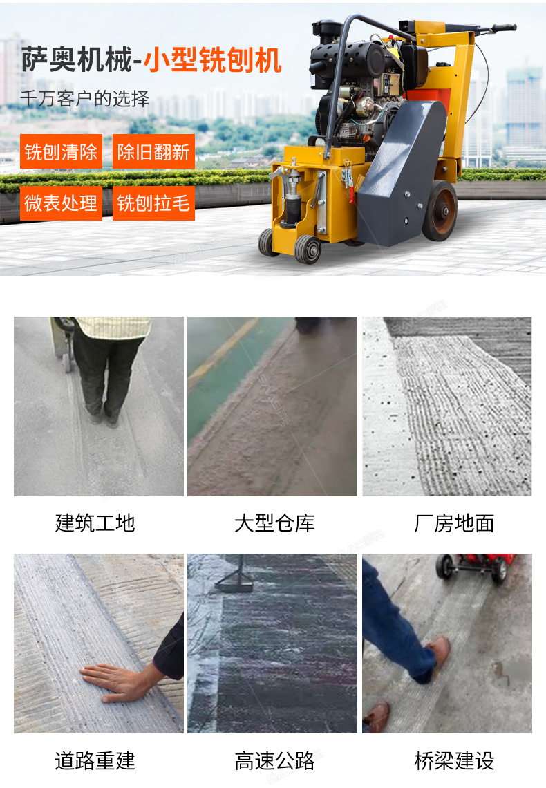 【產(chǎn)品介紹】 用于橋面鋪設(shè)瀝青或車間舊的混凝土地面重新攤鋪混凝土之前,清除水泥浮漿以及鏟平拉毛,也用于清除建筑施工中遺留的堅硬灰渣。 【產(chǎn)品用途】 小型銑刨機主要是用