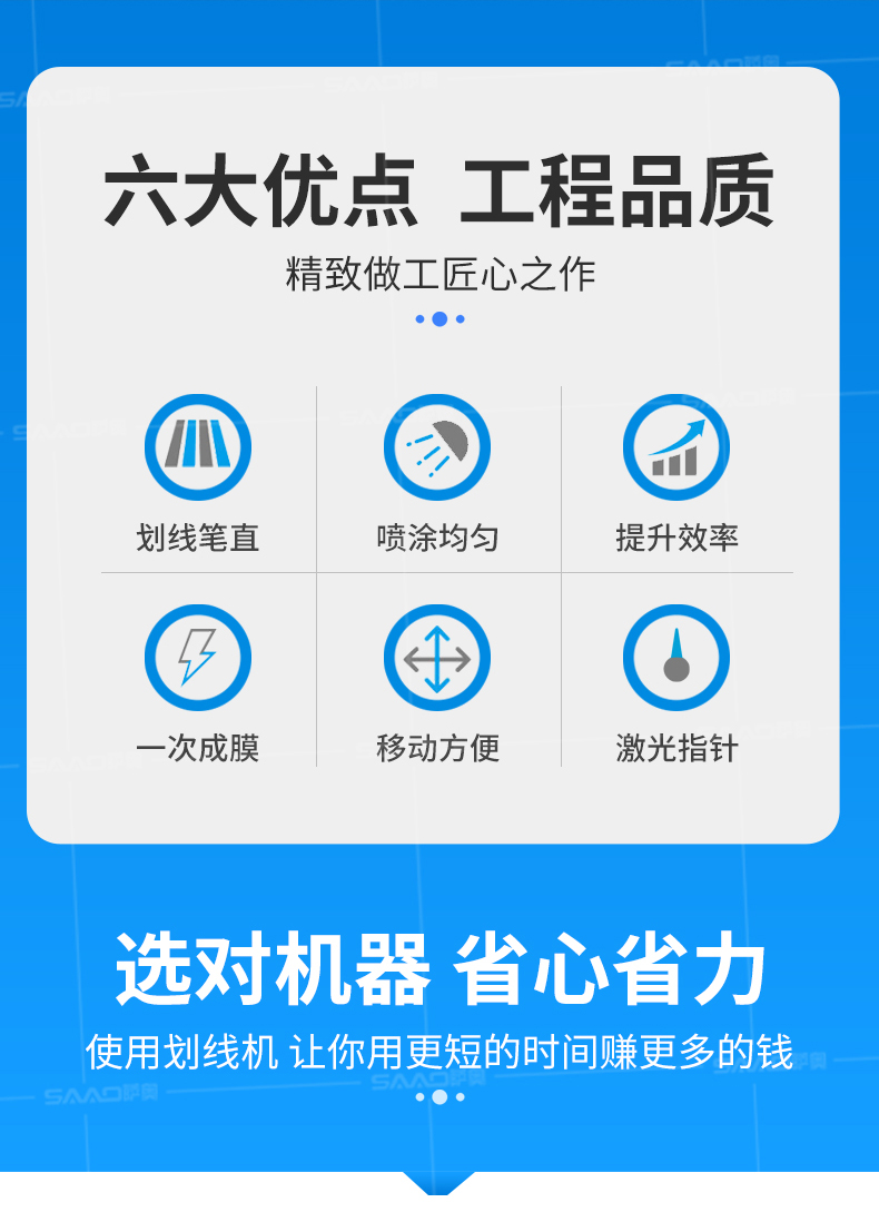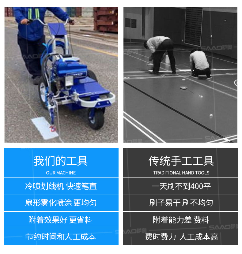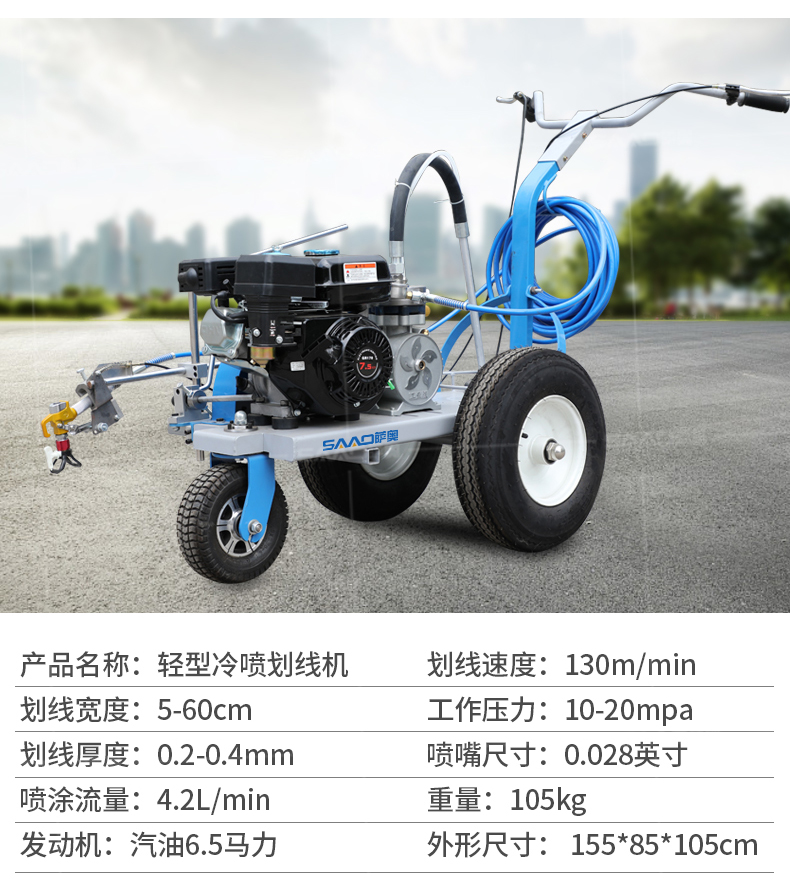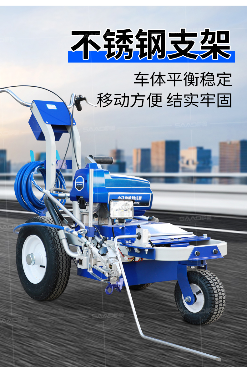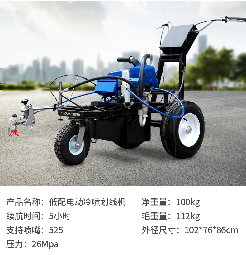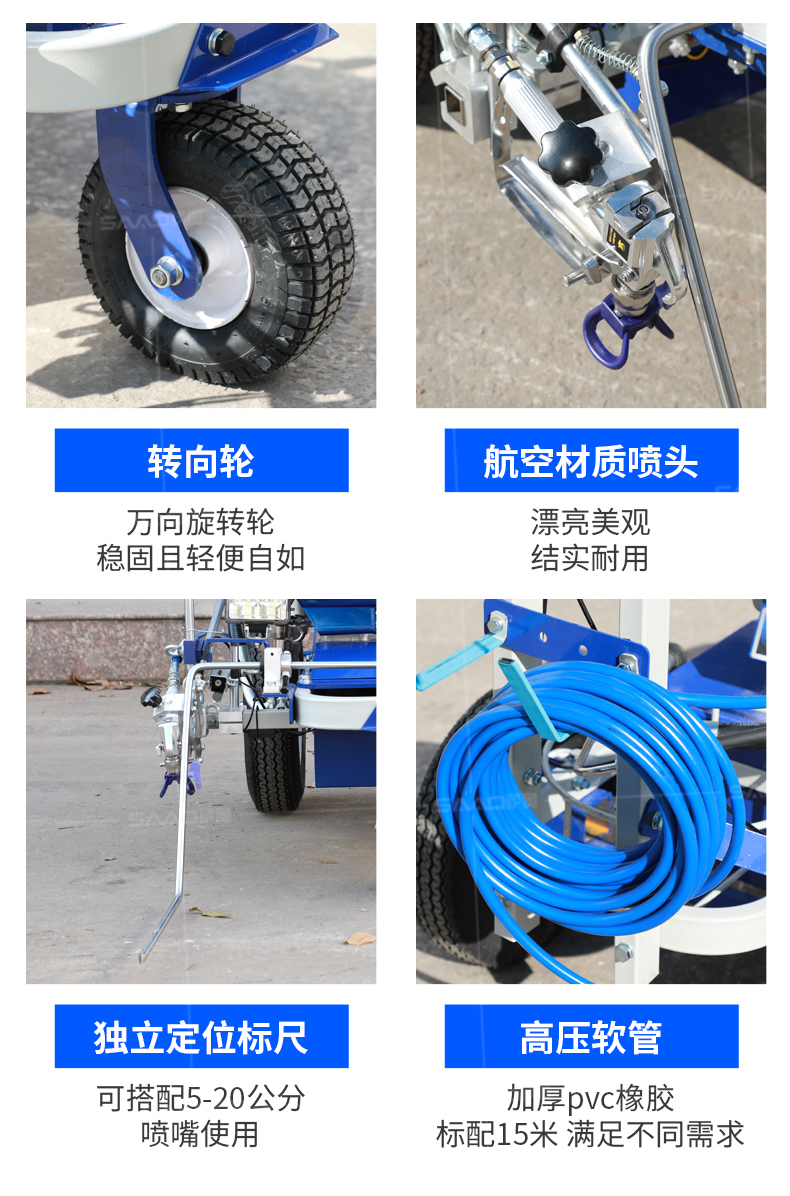 【產(chǎn)品介紹】 小區(qū)物業(yè)、地下車庫、學(xué)校、加油站、駕校場地等噴涂工作量不是特別大的客戶 【產(chǎn)品優(yōu)勢】 持久續(xù)航,運(yùn)行穩(wěn)定,劃線筆直,無噪音。 真空氣輪:減震效果更為顯著平