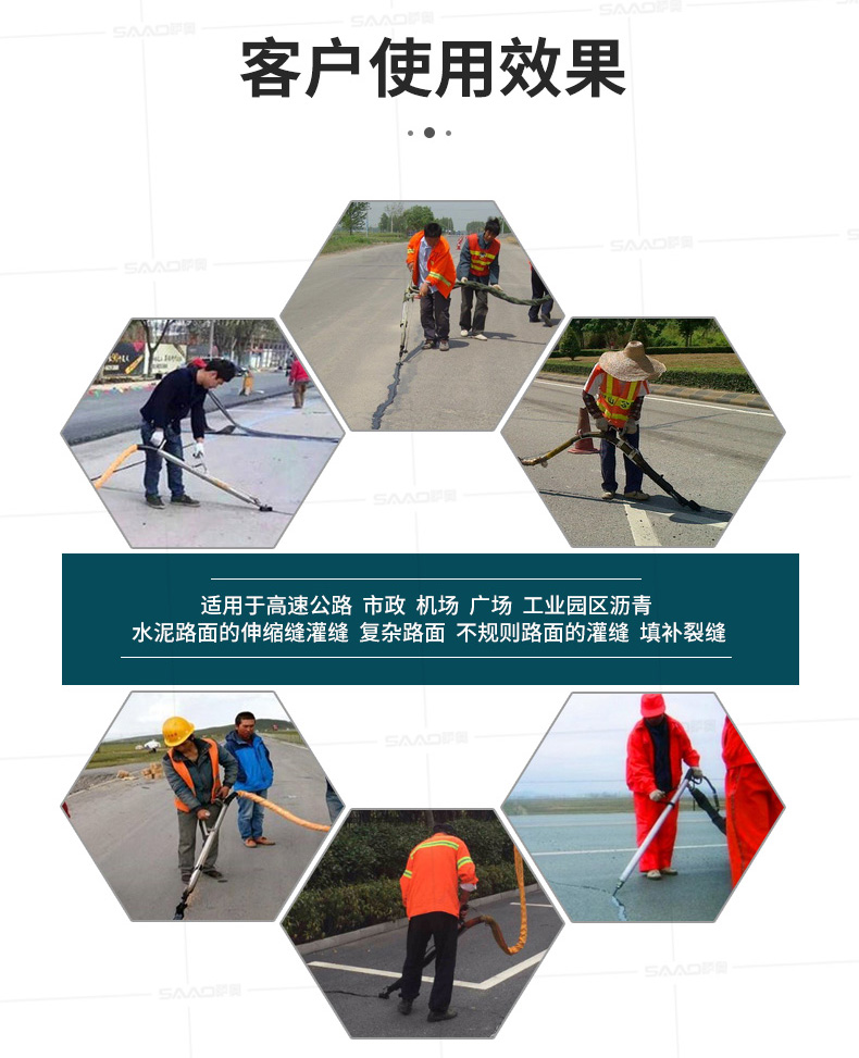 應(yīng)用廣泛適用多種領(lǐng)域適用于高速公路、市政、機(jī)場、廣場、工業(yè)園區(qū)瀝青、水泥路面的伸縮縫灌縫、復(fù)雜路面、不規(guī)則路面的灌縫,填補(bǔ)裂縫。