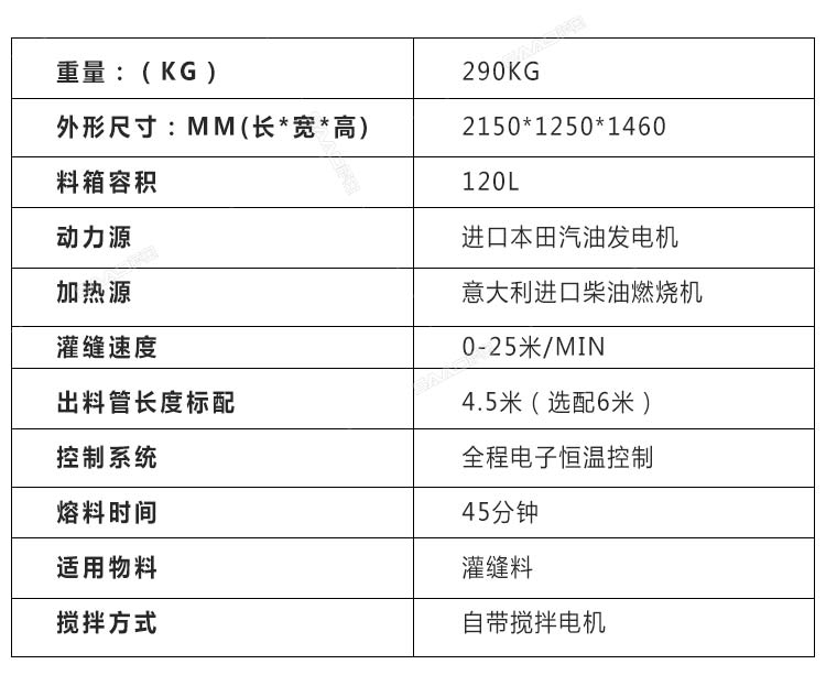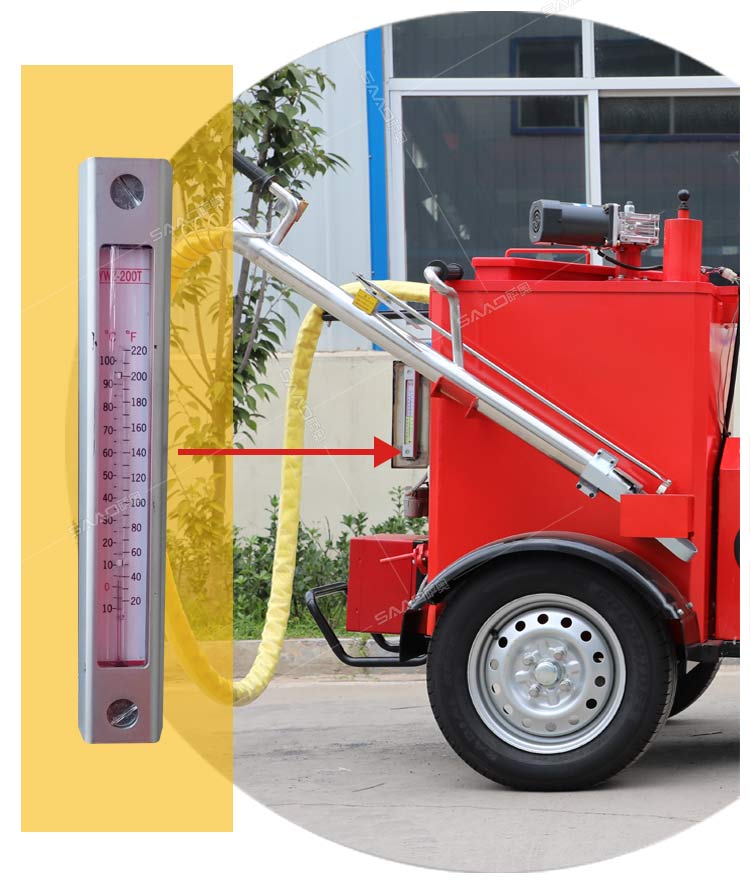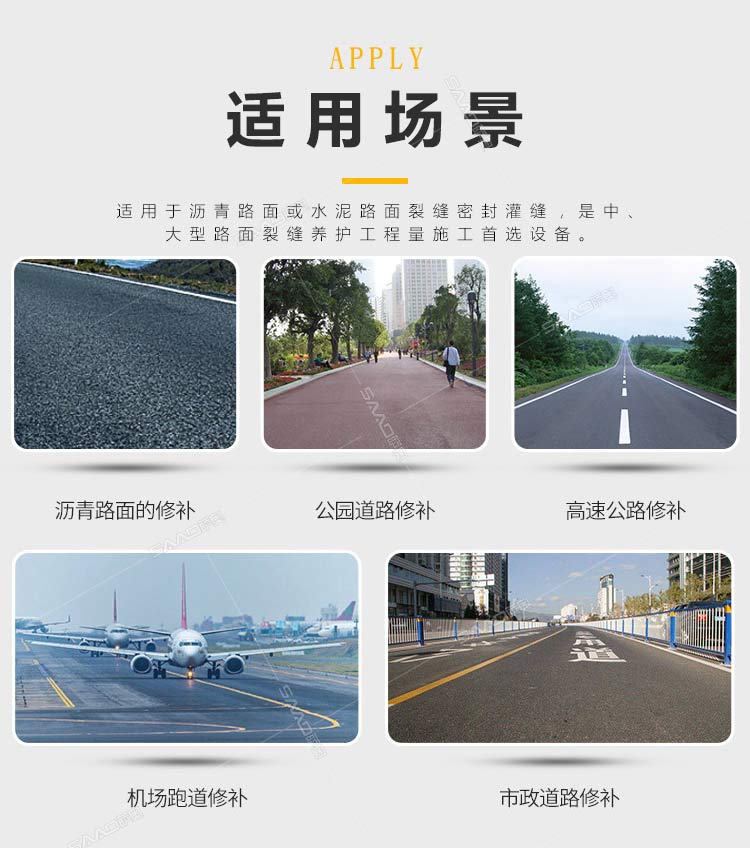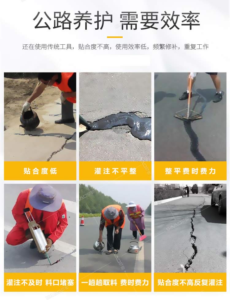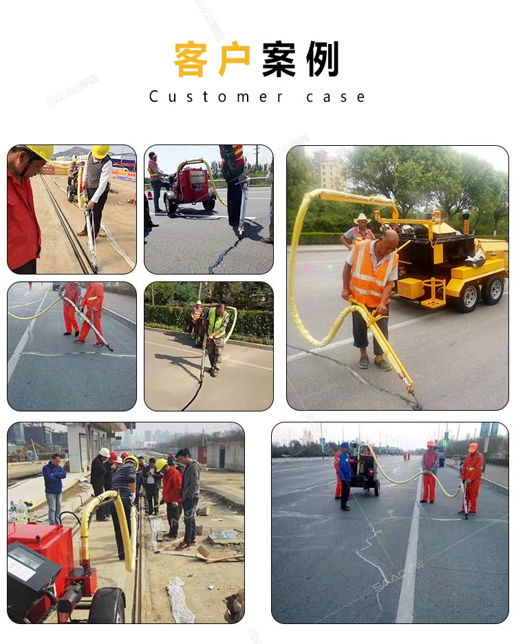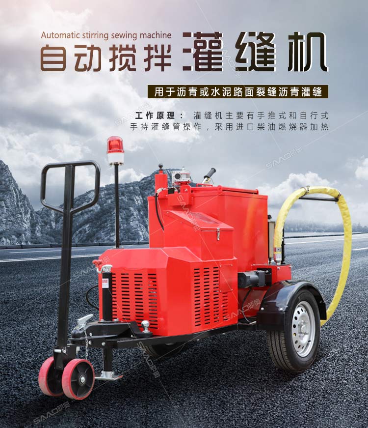120升自動(dòng)攪拌款灌縫機(jī)用于瀝青或水泥路面裂縫瀝青灌縫,注意:在灌縫前要對(duì)裂縫內(nèi)的塵土進(jìn)行清縫處理。