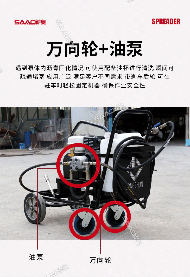 小型乳化瀝青撒布機用于修補瀝青道路上的坑槽,裂縫或?qū)磳⒗匣穆访孢M行表層噴層修復翻新,由于在養(yǎng)護瀝青道路時經(jīng)常需要對路面均勻噴灑乳化瀝青或防水材料。