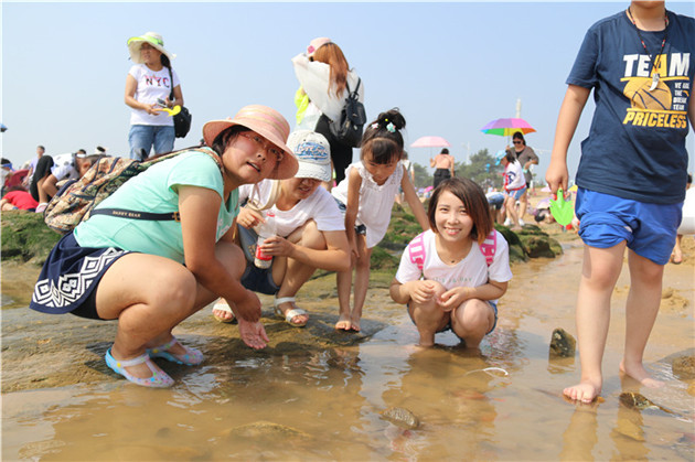 有趣的是捉螃蟹,螃蟹都藏在石頭底下