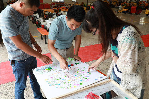 薩奧就像是一顆大樹,因?yàn)榇蠹覉F(tuán)結(jié)一致,共同努力才使得這棵樹長(zhǎng)得更加高大、筆挺。慶典開始后,大家排隊(duì)在薩奧大樹的樹干上印上一個(gè)個(gè)手指印,組成了一個(gè)個(gè)愛(ài)心,為本來(lái)光禿禿的樹干帶來(lái)了絢麗的色彩。