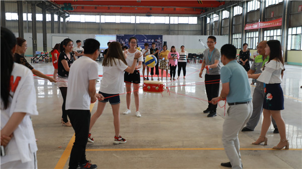 公司開展拓展活動(dòng)---同心鼓。抽簽選出18個(gè)人,分成兩組比賽,9個(gè)人一組,每組一個(gè)組長(zhǎng),負(fù)責(zé)制定擊球策略。一個(gè)負(fù)責(zé)發(fā)球,其余8個(gè)人一同抓著鼓上的繩子,牽著鼓去擊球。定時(shí)4分鐘,計(jì)算擊球的個(gè)數(shù),擊球個(gè)數(shù)多者勝出。