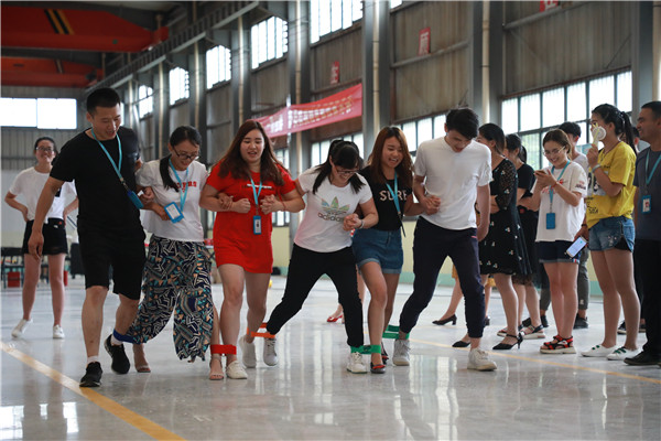 游戲---三人兩足。選出24個(gè)人,分成4組,各組選出一個(gè)組長(zhǎng)來(lái)制定總的比賽方案。每組6人站成一排,將相鄰的兩人的腳綁在一起行走,在固定的路程內(nèi)計(jì)算行走時(shí)間。每?jī)蓚€(gè)組之間比較,用時(shí)少者勝出。