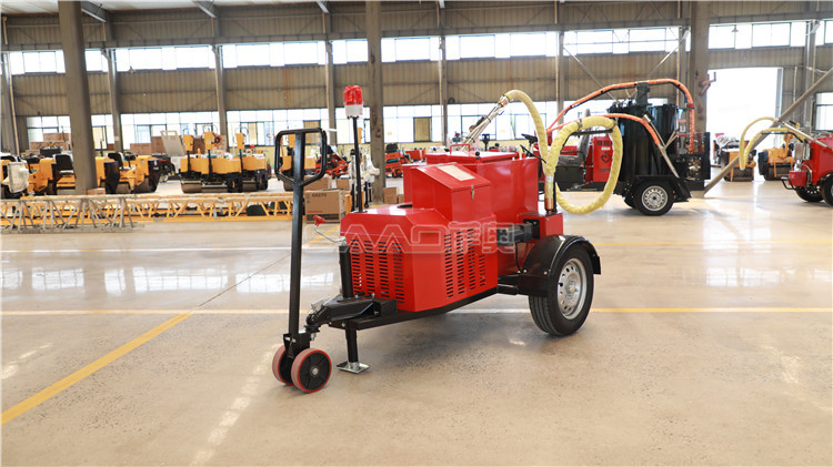 作為路面常見問題的裂縫,我們對此采取的態(tài)度是:及時封閉,禁止蔓延。瀝青灌縫機是對裂縫進行熱修補的設備,將瀝青料加熱灌入裂縫中,使灌縫料與裂縫貼合,封閉裂縫,禁止其蔓延。在瀝青灌縫機施工過程中需要配合的是,對裂縫進行擴縫,并清理干凈,讓灌縫料與裂縫面更好的貼合。