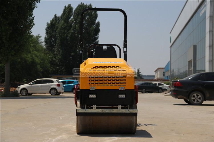 6、施工完之后,把小型壓路機停在一個相對安穩(wěn)的地方,拉動駐車制動器然后鎖好駕駛室的門,用三角形木頭或石頭把輪子固定好。