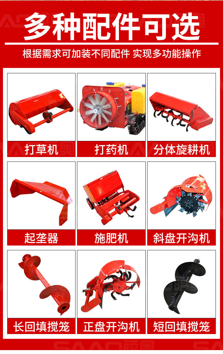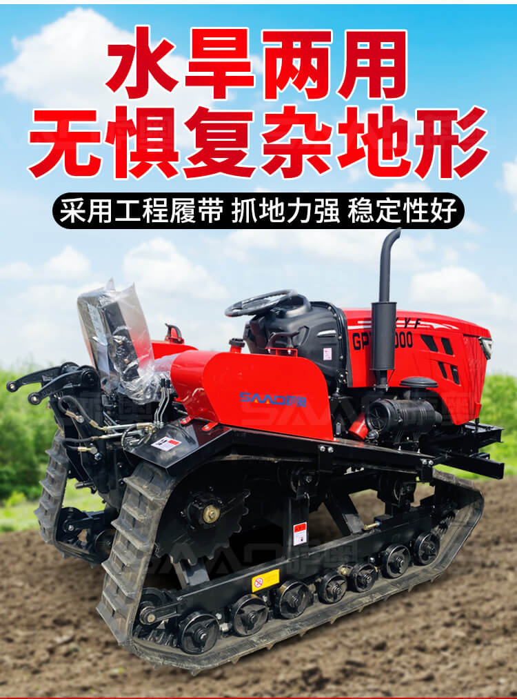 履帶旋耕機(jī)本機(jī)能完成耕、耙作業(yè),具有碎土能力強(qiáng)、耕后地表平坦等特點(diǎn)。