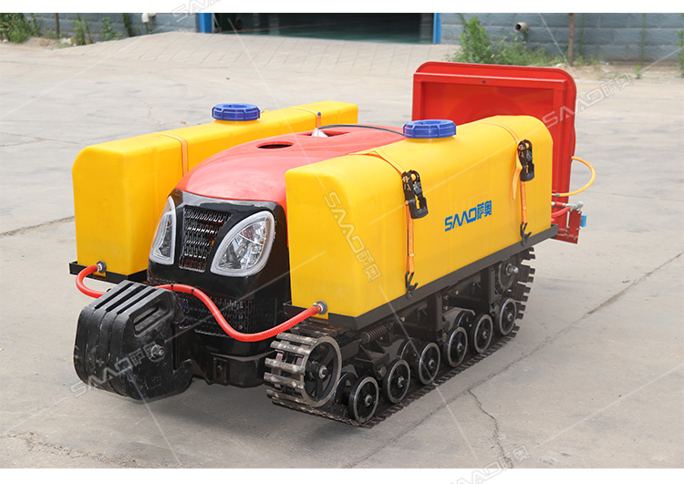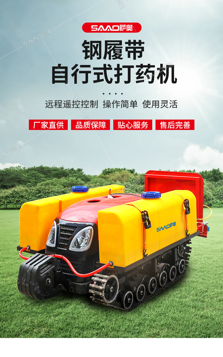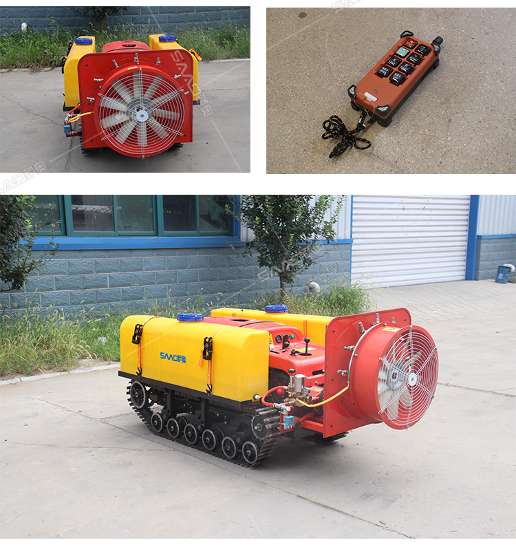 28馬力鋼履帶自行式打藥機(jī),風(fēng)送式噴霧機(jī),霧化好,噴射距離遠(yuǎn);遙控操作,人機(jī)分離,確保作業(yè)人員安全,免受藥?kù)F傷害。