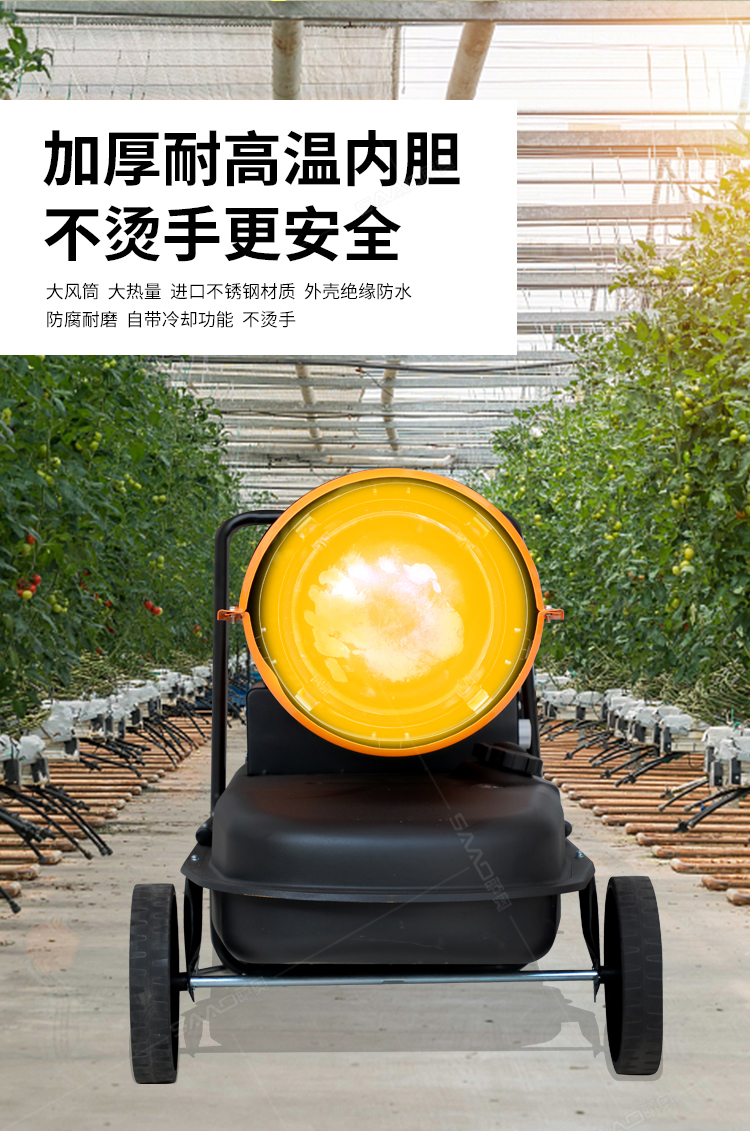 我廠專業(yè)生產(chǎn)溫室大棚暖風機,養(yǎng)殖場專用暖風機,15KW/30KW電暖風機,20KW/30KW/70KW/80KW燃油暖風機,型號齊全,全國發(fā)貨!過熱保護,恒溫,質(zhì)量保證!如需了解請致電24小時免費電話:400-860-5689