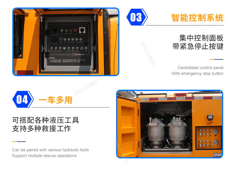 該皮卡多功能救援車作為大功率移動式的液壓動力源,可驅動多達百余種不同功能的液壓工具進行作業(yè)