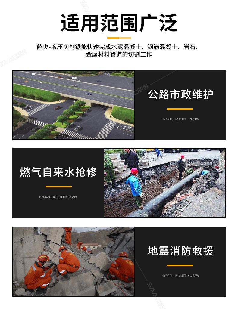 SA13液壓切割鋸在公路市政維護(hù)、燃?xì)庾詠硭畵屝蕖⒌卣鹣谰仍心芸焖偻瓿伤嗷炷痢摻罨炷?、巖石、金屬材料管道的切割工作。整體輕巧,易于操作,動力強(qiáng)勁而且耐用???/div>
