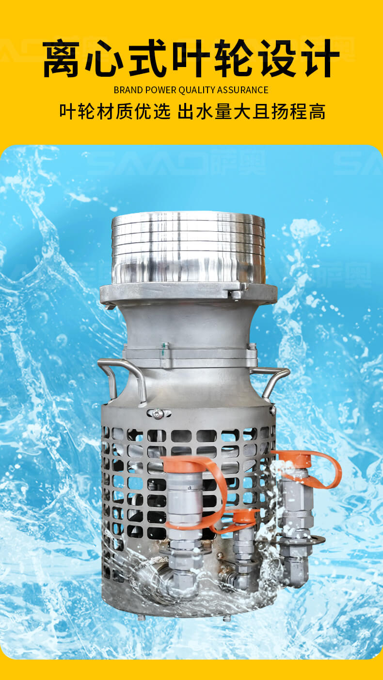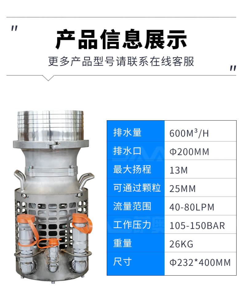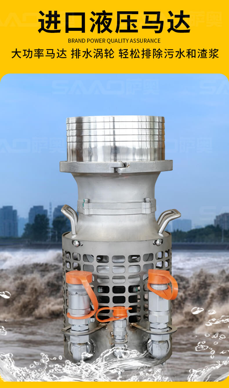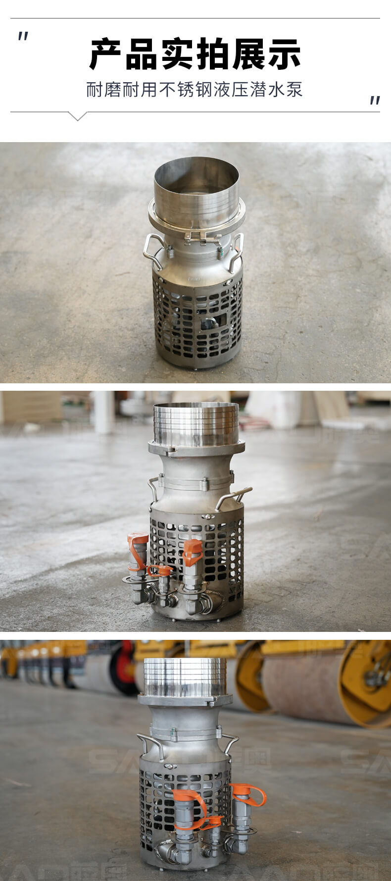 液壓潛水泵重量輕,適用苛刻環(huán)境,耐磨件少,幾乎不用維護保養(yǎng),無需復雜操作培訓,可與挖掘機、裝載機等液壓動力源連接使用。
