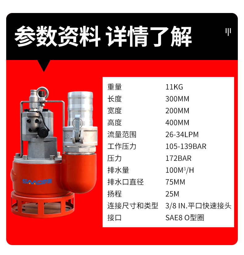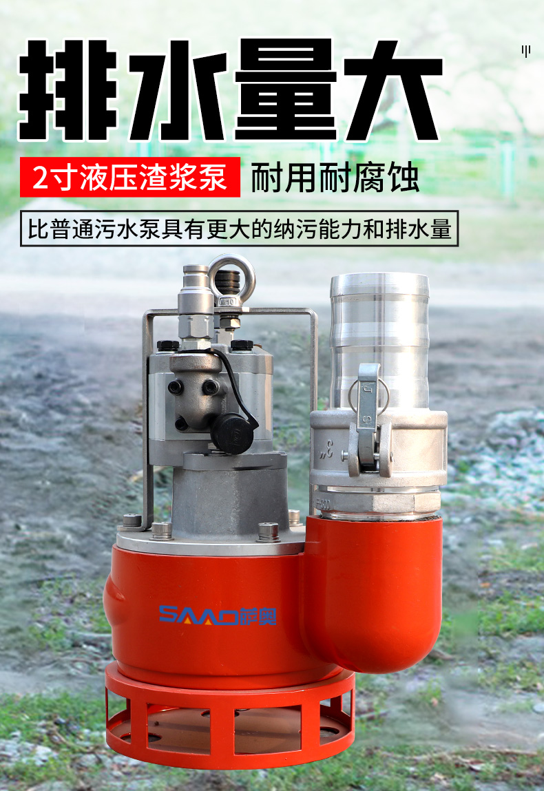 薩奧液壓渣漿泵輕質(zhì)、緊湊和高效,液壓渣漿泵的用途非常廣泛,包括在建筑工地、水淹沒的開挖地和地下室連續(xù)泵送清水或污水、城市洪澇等。 這種泵以具有特殊驅(qū)動軸、油封和軸承
