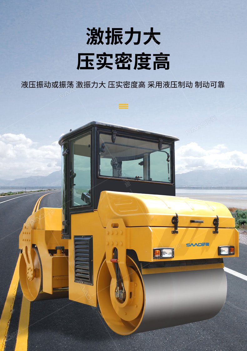 SAC6型振動(dòng)壓路機(jī)(SAC6CD型振蕩壓路機(jī))是一種串聯(lián)式的雙鋼輪型振動(dòng)(蕩)壓實(shí)機(jī)械;該機(jī)主要由鉸接式車架、振動(dòng)(蕩)輪、轉(zhuǎn)向輪,動(dòng)力裝置、液壓振動(dòng)、液壓轉(zhuǎn)向、操縱機(jī)構(gòu)、電動(dòng)灑水和