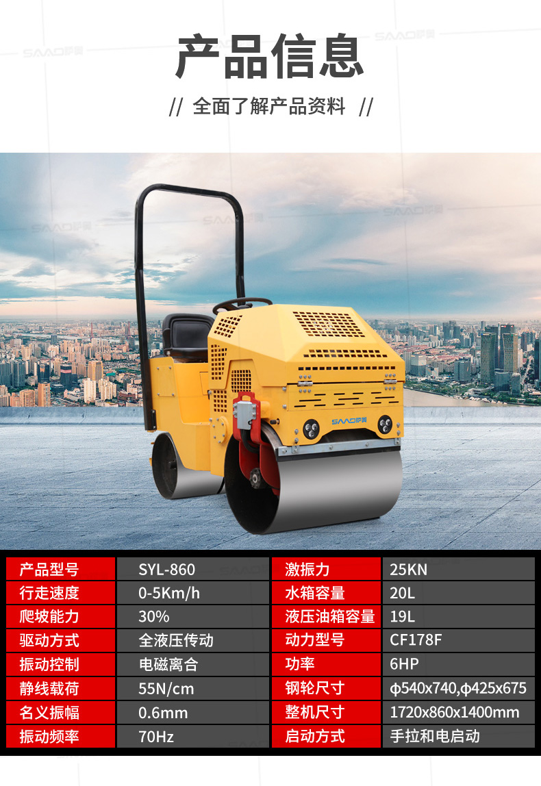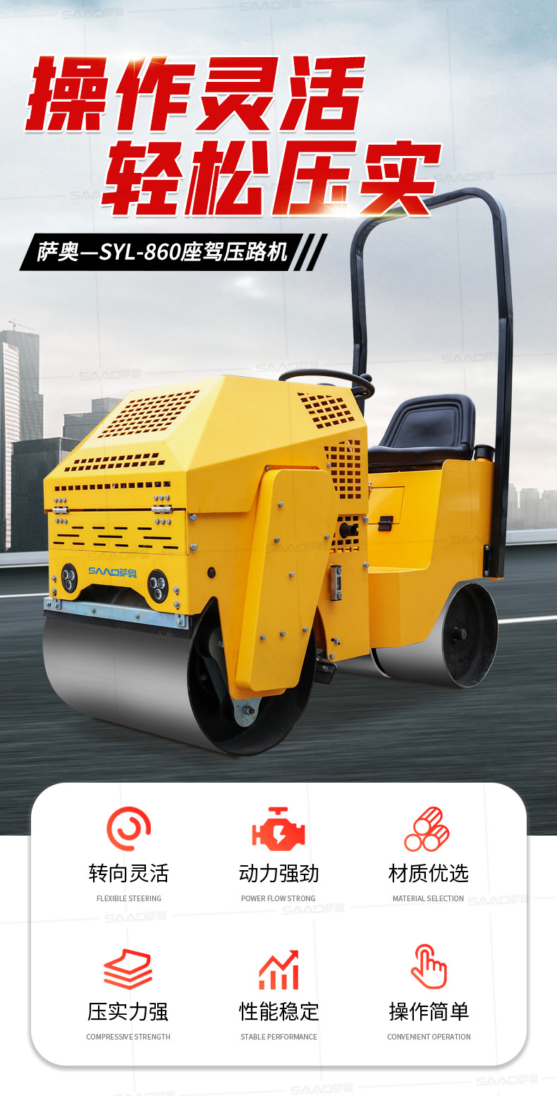 SYL-860座駕壓路機適用于各種溝槽沙土回填壓實、高層建筑地下室土方壓實、小區(qū)道路基礎(chǔ)壓實、各種草坪壓實、修修補補及各種小型工程的使用,解決了大型壓路機無法工作區(qū)域的壓實